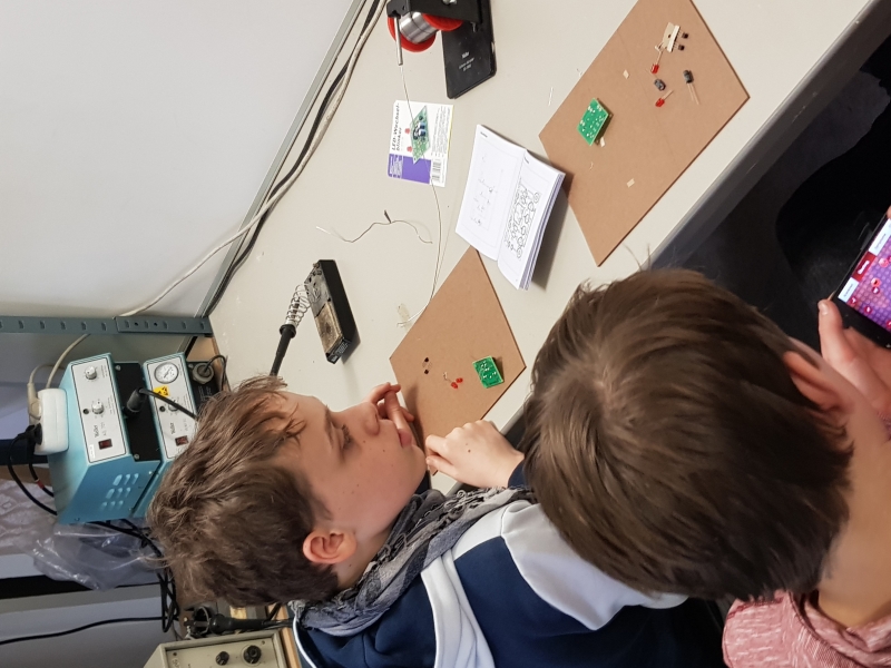 Bereits zum zweiten Mal trifft sich die AG in der Schule und lötet ein kleines Projekt zu Weihnachten.